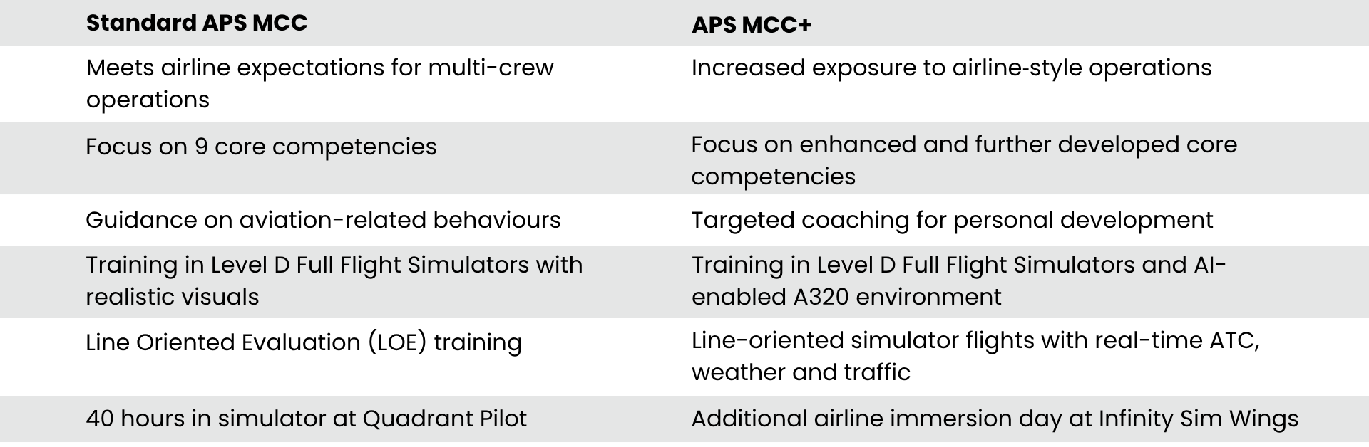 If your goal is to be airline‑ready, APS MCC+ is built for you.